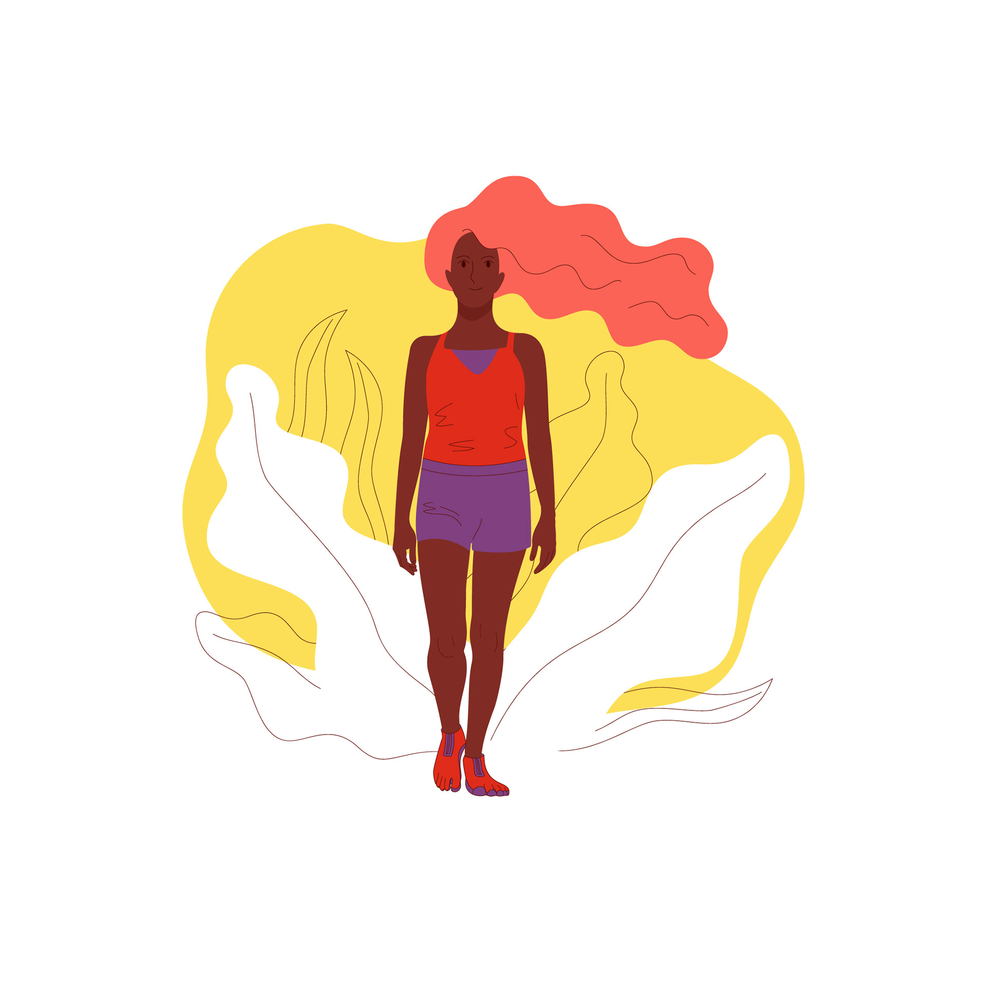 Illustration of a girl wearing sport shoes with toes outdoors.